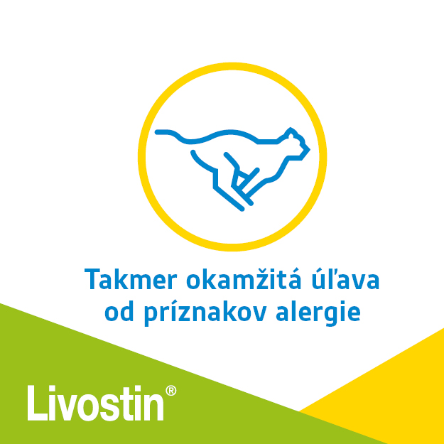 Takmer okamžite a na niekoľko hodín zmierňuje príznaky alergickej rinitídy – Livostin®, nosový sprej a alergickej konjunktivitídy – Livostin®, očné kvapky