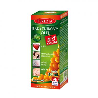 Výživový doplnok, rakytníkový olej je prírodný koncentrát vitamínov A, B1, B2, B6, D, E, F, K, P, ďalej obsahuje betakarotén, kyselinu listovú, organické kyseliny, triesloviny a minerálne soli, dôležité esenciálne mastnej kyseliny omega-3, -6, -9. Je tiež zdrojom vzácnej omega-7 mastnej kyseliny, ktorá sa v prírode vyskytuje zriedka, v rakytníkovom oleji je obsiahnutá až zo 40 %.