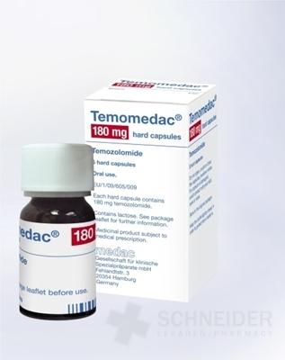 - u dospelých s novodiagnostikovaným multiformným glioblastómom. Používa sa najprv spolu s rádioterapiou (súbežná fáza liečby) a následne samotný (fáza monoterapie).