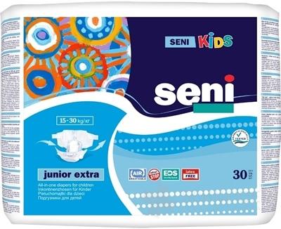 Pre detských pacientov trpiacich stredným a ťažkým stupňom inkontinencie. Neobsahujú latex. Veľkosť Junior extra - pre deti s hmotnosťou 15-30 kg, savosť 1100 ml.