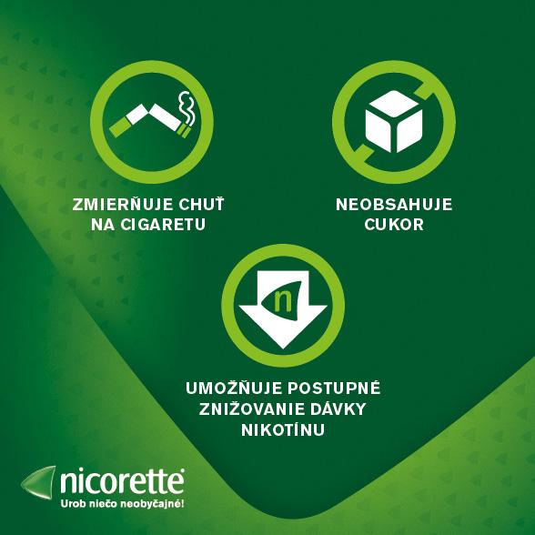 Žuvačka Nicorette® je liečivý prípravok určený na skoncovanie s fajčením. Ponúka dlhotrvajúcu príjemnú chuť, ktorá ti pomôže zvládnuť abstinenčné príznaky. Ak stále cítiš silnú, neovládateľnú chuť na cigaretu, tak si počas jednej hodiny môžeš dať ešte jednu.