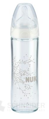 Detská sklenená fľaša s objemom 240ml. NUK kvalita - inovácia - teraz fľaša s novým dizajnom, iba biela.