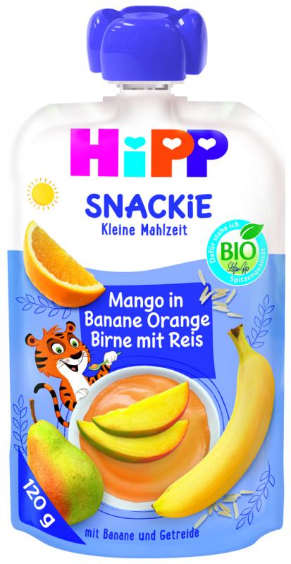 Originálny názov: HiPP BIO KINDER Banán Pomaranč Hruška Mango Ryža kapsička ovocno-obilný príkrm 1x120 g