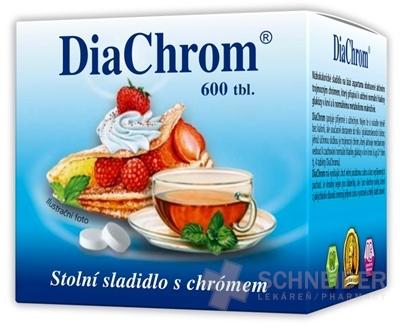 DiaChrom je moderné stolové sladidlo na bázi aspartámu (E 951) obohatené chrómom. Chróm prispieva k udržaniu normálnej hladiny glukózy v krvi. Chróm prispieva k správnej látkovej premene makronutientov (min. 6 mikrogramov Cr/den tj. 4 tablety DiaChromu).