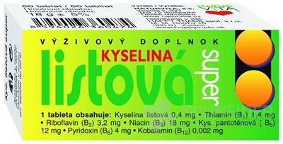 Výživový doplnok Kyselina listová super s obsahom kyseliny listovej (folát) a ďalších vitamínov skupiny B: