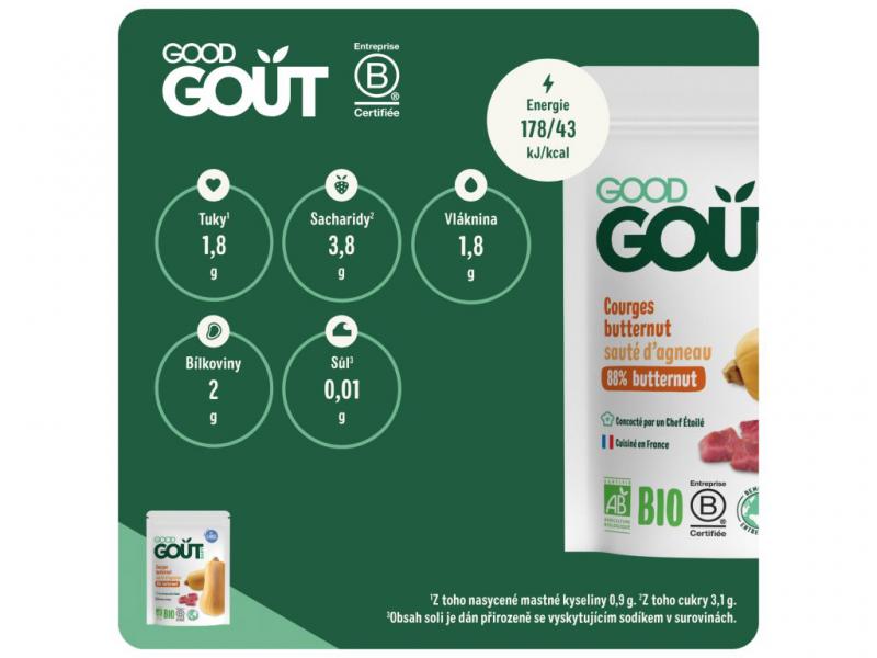 Originálny názov: Good Gout BIO Maslová tekvica s jahňacím mäsom 190 g