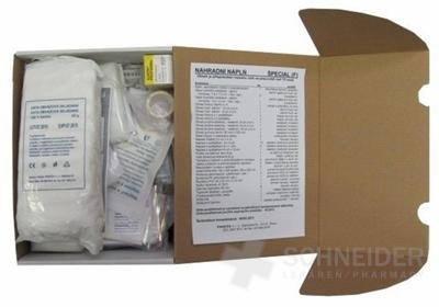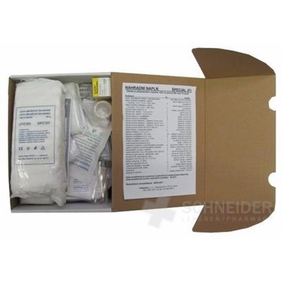 Súprava sterilných a nesterilných zdravotníckych pomôcok a kozmetických výrobkov. Pre organizácie na poskytnutie dočasnej prvej predlekárskej pomoci. Náhradná náplň špeciál F v kartóne, obsah je prispôsobený rozsahu rizík na pracovisku nad 15 osôb.