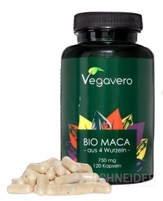 Výživový doplnok s obsahom 750 mg organického prášku zo 4 druhov koreňa maca, 25% žltého, 25% červeného, 25% fialového a 25% čierneho koreňa - Lepidium meyenii.