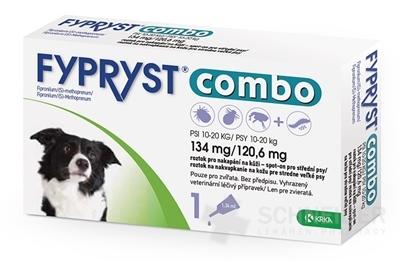 FYPRYST combo 134 mg/120,6 mg roztok na nakvapkanie na kožu pre stredne veľké psy (10-20 kg). Obsahuje kombináciu dvoch účinných látok: fipronilu a metoprenemu. Roztok sa nachádza v pipetách, pričom každá pipeta obsahuje: