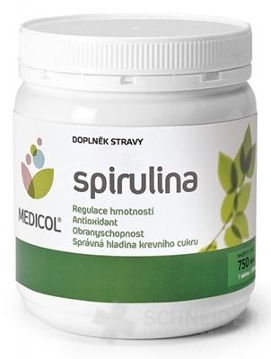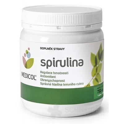SPIRULINA je druh sladkovodnej riasy, ktorá obsahuje rad vitamínov, minerálov, aminokyselín a je bohatým zdrojom bielkovín. Z radu vitamínov sú vo väčšom množstve zastúpené vitamíny A , B12 a tiamín.Tablety Tablety sú lisované za studena (max. 40 ° C ), lisovaním za tepla sa ničia vitamíny. Neobsahuje žiadne plnivá ani spojiva.