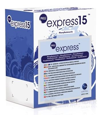 PKU Express 15 je sypký, ochutený prípravok bez fenylalanínu. Obsahuje esenciálne a neesenciálne aminokyseliny, sacharidy,
