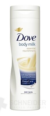 Telové mlieko na suchú pokožku Dove Essential Nourishment nielen hydratuje povrch pokožky, ale tiež poskytuje výživu do hĺbky* pre dlhotrvajúcu jemnú a hebkú pokožku. Dermatologicky testované.vrchné vrstvy pokožky.