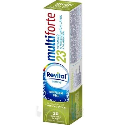 Výživový doplnok Revital® multiforte šumivý - vitamínové tablety s minerálnymi látkami + vláknina s príchuťou tropické ovocie. Obsahuje komplexné zloženie vitamínov a minerálnych látok, ktoré organizmus potrebuje, ale nepríjma zo stravy vždy v dostatočnom a potrebnom množstve.