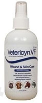 Veterinárny prípravok na rany a kožu Vetericyn VF je určený na použitie veterinármi na čistenie, oplachovanie, zvlhčovanie a odstraňovanie nečistôt a nekrotického tkaniva z rán pri akútnych a chronických kožných léziách rôznej hrúbky, napr. popáleniny 1. a 2. stupňa, tlakové vredy v štádiu I- IV, venózne vredy, odreniny a menšie podráždenia pokožky, rany po chirurgických zákrokoch, miesta štepov a transplantátov. Okrem toho sa používa na vlhčenie a mastenie savých obväzov. Viac na adc.sk