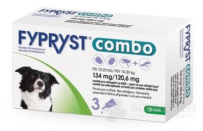 FYPRYST combo 134 mg/120,6 mg roztok na nakvapkanie na kožu pre stredne veľké psy (10-20 kg). Obsahuje kombináciu dvoch účinných látok: fipronilu a metoprenemu. Roztok sa nachádza v pipetách, pričom každá pipeta obsahuje: