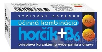 ÚČINNÉ LÁTKY v 2 tabletách: Horčík (Mg) 120 mg, Vitamín B6 6 mg.