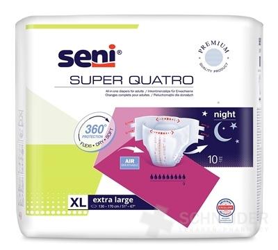 Originálny názov: Seni SUPER QUATRO extra large 4 plienkové nohavičky, pás 130-170 cm, 1x10 ks