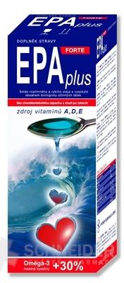 Výživový doplnok EPAplus FORTE vyrobený zo zmesi kvalitného rastlinného oleja a zvýšeného podielu oleja z morských rýb. O 30% silnejší ako EPAplus Natural! Zmes obsahuje vitamín D (cholekalciferol), je doplnená o provitamín A-beta karotén a vitamín E (DL- α -tokoferyl-acetát). Základnou zložkou prípravku sú nenasýtené mastné kyseliny.