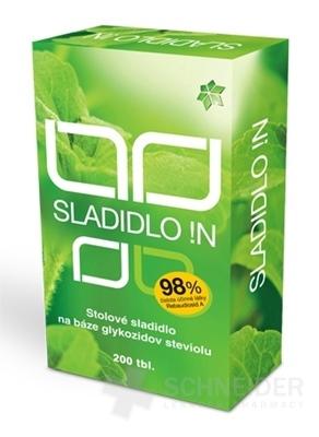 Zloženie: Glykozidy steviolu (Rebaudiosid A 98%) 12 mg, laktóza, karboxymetylcelulóza (emulgátor), Leucín.