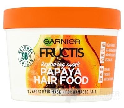 Ošetrujúca maska na vlasy obsahuje zloženie, ktoré je z 98 % prírodného pôvodu. Zvyšné 2 %, ktoré zaručujú senzorické vlastnosti a správnu konzerváciu, sú tiež dermatologicky testované a schválené bezpečnostným oddelením. Maska vďaka zloženiu s papájou intenzívne vyživuje aj poškodené a suché vlasy a zanecháva ich lesklé a hebké na dotyk. Vlasy po aplikácii príjemne voňajú.