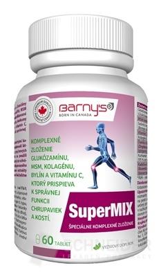 Výživový doplnok Barny´s SuperMIX je kombinovaný rastlinný a živočíšny produkt, ktorý obsahuje glukozamín sulfát, MSM, kolagén II.typu, štandardizované extrakty boráka lekárskeho (Borago officinalis), ďumbiera lekárskeho (Zingiber officinale), kurkumy dlhej (Curcuma longa), kadidlovníka pilovitého (Boswellia serrata) doplneného o vitamín C.