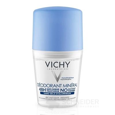 Vichy Homme Guličkový dezodorant pre citlivú pokožku. Upokojuje pokožku a prináša okamžitý a dlhotrvajúci pocit sviežosti, dlhotrvajúci komfort - 48 hodín pôsobí proti poteniu, ale nebrzdí prirodzené telesné procesy, znižuje citlivosť pokožky, bez alkoholu a parfumácie, pre každodenné použitie, vhodný pre citlivú pokožku.