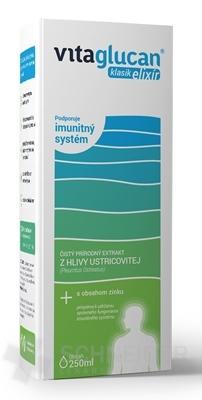 Výživový doplnok Vitaglucan elixír obsahuje výťažok z Hlivy ustricovej a zinok, ktorý prispieva k