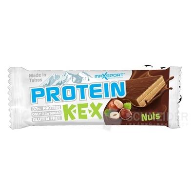 Zloženie: bielkovinový premix 29,6% (sójový bielkovinový izolát, hydrolyzovaný kolagén, srvátkový bielkovinový koncentrát, maltodextrín), kakaová poleva s fruktózou 21% (rastlinný tuk palmojadrový, sušená srvátka, odtučnené kakao 14%, fruktóza 14%, laktóza, maltodextrín, emulgátory /lecitíny, polyglycerolpolyricínoleát/, arómy), rastlinný tuk (palmový, shea), kukuričná múka, zemiakový škrob, repkový olej, pohánková múka, amarantová múka, fruktóza, pražené lieskové orechy 1,4%, sójová múka, odtučnené kakao, zahusťovadlo (guarová guma), arómy, kypriace látky (uhličitany sodné a amónne), sladidlo (sukralóza), emulgátor (lecitíny), kyselina listová.