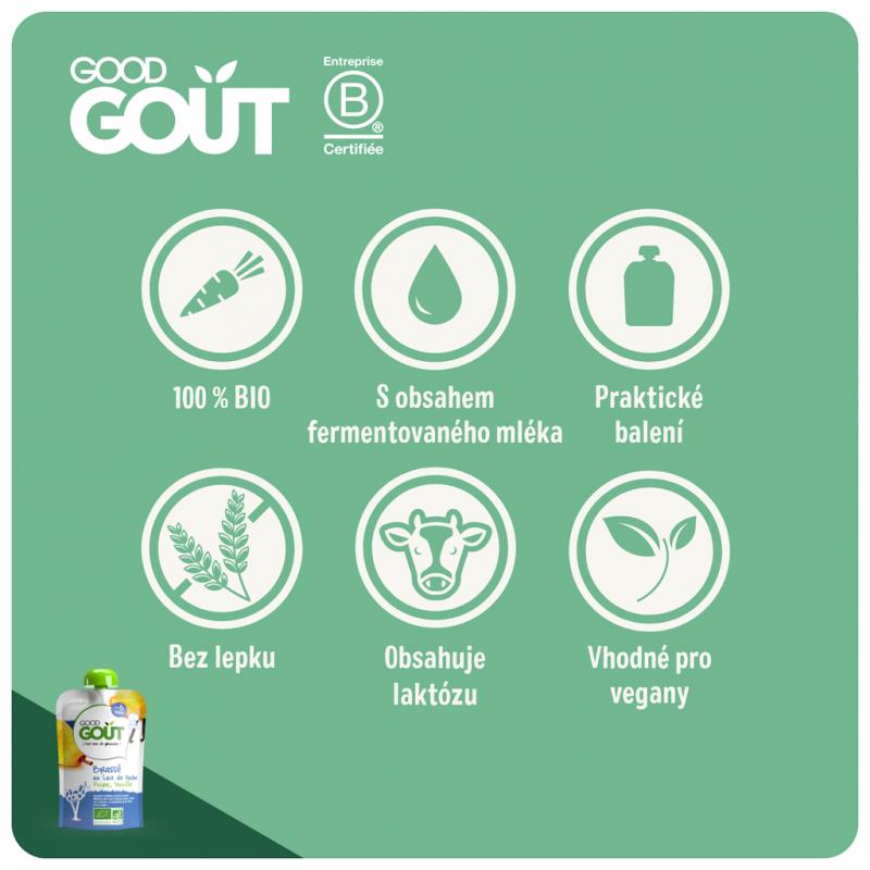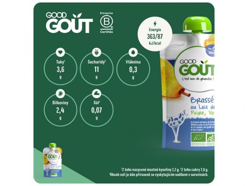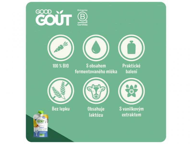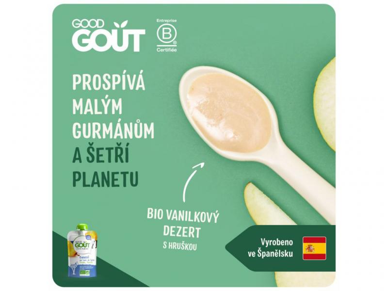 Originálny názov: Good Gout BIO Vanilkový jogurt s hruškou ovocný príkrm s jogurtom 1x90 g