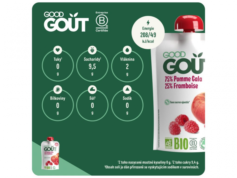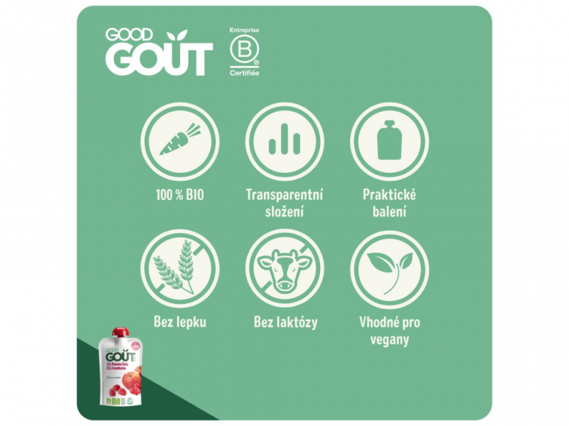 Originálny názov: Good Gout BIO Jablko s malinou ovocný príkrm 1x120 g