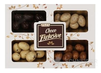 - pražené jadrá mandlí v bielej čokoláde s kakaovými bôbmi