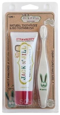 Originálny názov: JACK N´JILL Akciový set prírodná zubná pasta JAHODA + BIO detská zubná kefka Zajko
