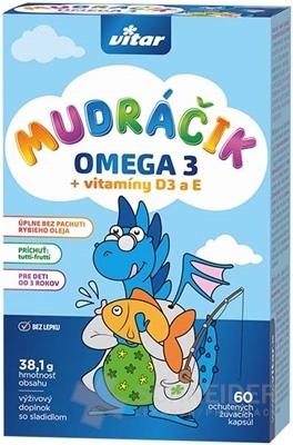 Originálny názov: VITAR MUDráčik OMEGA 3 + vitamíny D3 a E žuvacie kapsule s príchuťou tutti-frutti 1x60 ks