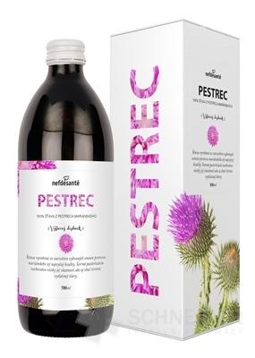 Výživový doplnok. 100 % pasterizovaná šťava vyrobená zo starostlivo vybraných semien pestreca mariánskeho (Silybum marianum L.) s prídavkom vitamínu C. 500 ml fľaša zabalené v krabičke.