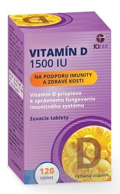 Výživový doplnok vo forme žuvacích tabliet obsahuje vitamín D (cholekalciferol) v 1 tablete.