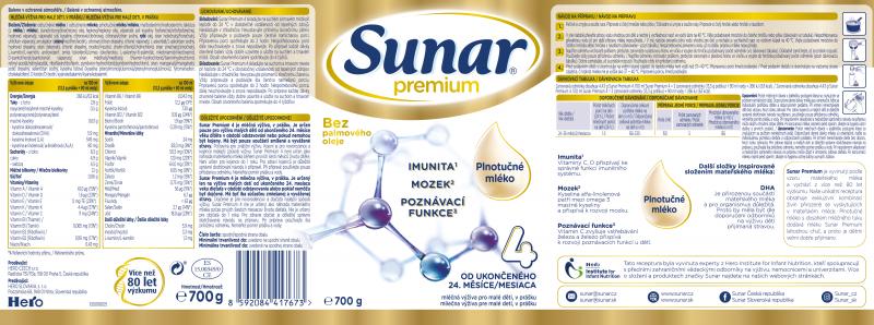 Batoľacie mlieko Sunar Premium 4 je určené pre malé deti od ukončeného 24. mesiaca do 36. mesiaca veku dieťaťa. Sunar Premium 4 je vyrobený z plnotučného mlieka, obsahuje unikátnu kombináciu látok prirodzene sa vyskytujúcich v materskom mlieku. Dojčenie je pre dojčatá najlepší spôsob výživy. Pokiaľ už dojčenie nie je možné alebo ste už dojčenie ukončili, ponúkame Sunar Premium 4, mliečnu výživu, ktorá spĺňa všetky požiadavky na výživu dieťaťa. Sunar Premium 4 je vyrobený z plnotučného mlieka, ktoré mu dodáva lahodnú chuť, takže ho deti lepšie prijímajú. Plnotučné mlieko vďaka obsahu mliečneho tuku prispieva k lepšej vstrebateľnosti vitamínov A, D, E, K rozpustných v tukoch. Obsahuje vyvážený pomer živín, ktorý je prispôsobený špeciálnym potrebám batoliat daného veku napr. znížený obsah bielkovín, ktorý nezaťažuje mladé obličky Vášho dieťaťa.