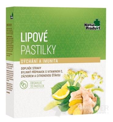 Zloženie: 1 pastilka s hmotnosťou 3,3 g obsahuje: cukor, glukózový sirup, okysľujúca látka kyselina jablčná, extrakt z kvetov lipy malolistej (Tilia Cordata) 1:15 (kvapalný extrakt s 80 % sušiny) 33 mg, extrakt z podzemku ďumbiera lekárskeho(Zingiber officinale) 1:15 (kvapalný extrakt s 80 % sušiny) 33 mg, zahustená citrónová šťava 1:5, vitamín C(kyselina L-askorbová) 16 mg (20 % RVH*).*RVH - referenčná výživová hodnota priemerného dospelého. Viac na adc.sk