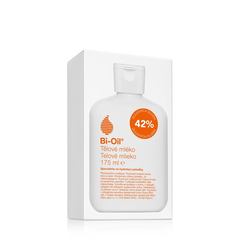 Bi-Oil Telové mlieko obsahuje 42 % olejových zložiek. Značka Bi-Oil vyvinula úplne revolučné telové mlieko s vysokým obsahom olejov na každodennú intenzívnu hydratáciu. Bi-Oil Telové mlieko obsahuje 2x viac olejov ako klasické telové mlieka. Vďaka tomu poskytuje koži potrebné lipidy, ktorých obsah môže klesať vplyvom častého umývania, extrémneho počasia alebo klimatizácie. Bi-Oil Telové mlieko obsahuje najmä šípkový a jojobový olej, ktoré spoločne s extraktom z nechtíka lekárskeho a vitamínmi A, E a F podporujú prirodzenú hydratáciu kože a jej ochrannú funkciu. Oproti klasickým mliekom sa však Bi-Oil Telové mlieko vyznačuje veľmi ľahkou textúrou a na pokožke nezanecháva žiadnu mastnotu, len jemnú, okom nepostrehnuteľnú vrstvičku. Vďaka tomu sa mlieko okamžite vstrebáva do kože a ihneď po jeho nanesení sa človek môže obliecť. Bez konzervantov, parabénov a ftalátov. Vhodné pre suchú a citlivú kožu, nekomedogénne. Na každodenné použitie. Pred použitím pretrepať. Zloženie: Aqua, Dimethicone, Isopropyl Palmitate, Ethylhexyl Cocoate, Isododecane, Isopropyl Myristate, Urea, Polyglyceryl-2 Dipolyhydroxystearate, Glycerin, Pentylene Glycol, Dicaprylyl Carbonate, Polyglyceryl-3 Diisostearate, Sodium Lactate, Dipentaerythrityl Hexacaprylate/Hexacaprate, Gluconolactone, Rosa Canina Fruit Oil, Simmondsia Chinensis Seed Oil, Calendula Officinalis Extract, Butyrospermum Parkii Oil, Helianthus Annuus Seed Oil, Glycine Soja Oil, Isostearyl Isostearate, Bisabolol, Octyldodecyl PCA, Retinyl Palmitate, Tocopheryl Acetate, Linoleic Acid, Linolenic Acid, Tocopherol, Sodium PCA, Sodium Hyaluronate, Lactic Acid, Stearalkonium Hectorite, Propylene Carbonate.