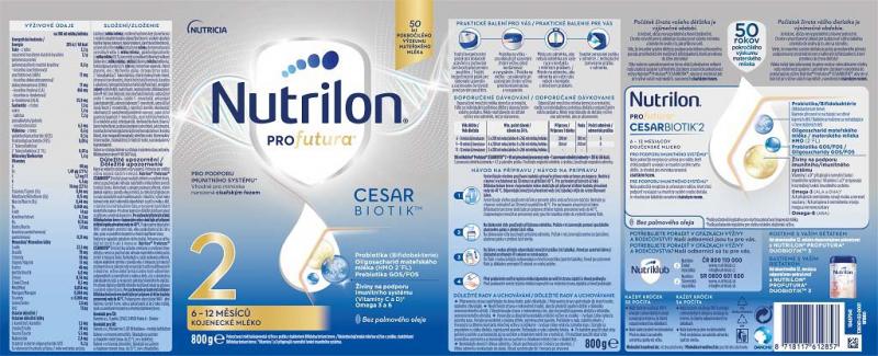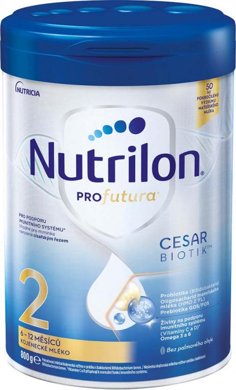 Dojčenie je najlepším spôsobom výživy dojčiat. Potravina na výživu dojčiat starších ako 6 mesiacov. Nutrilon® Profutura® CESARBIOTIK™ 2 má byť iba súčasťou zmiešanej a vyváženej stravy dieťata a nemá sa používať ako náhrada materského mlieka počas prvých 6 mesiacov života. Rozhodnutie o začatí podávania príkrmov, vrátane akejkoľvek výnimky z pravidla veku 6 mesiacov, by malo byť prijímané iba na základe rady nezávislých osôb kvalifikovaných v lekárstve, výžive alebo farmácii alebo iných odborníkov zodpovedných za starostlivosť o matku a dieťa, a to v závislosti na individuálnom raste a vývojových potrebách konkrétneho dojčaťa. Pre zdravie dojčiat je dôležité dôsledne dodržiavať návod na prípravu i uvedené odporúčania. Podporujeme odporúčania WHO - plné dojčenie v prvých 6 mes. veku a pokračovanie až do 2 rokov a ďalej, spolu so zavádzaním bezpečnej a vhodnej doplnkovej stravy.