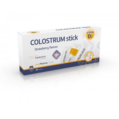 COLOSTRUM stick s jahodovou príchuťou, so sladidlom - výživový doplnok s obsahom kolostra a vitamínom D3 v práškovej forme rozpustnej priamo v ústach. Kolostrum (mledzivo) je „prvé mlieko“, ktoré má vďaka svojmu jedinečnému zloženiu mimoriadne blahodarné účinky. Kolostrum obsahuje vysoké množstvo imunoglobulínov – protilátok, ktoré sú súčasťou imunitného systému. Pre maximálnu podporu imunitného systému navyše obohatené o vitamín D3.