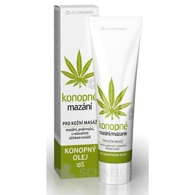 Krém s 10% konopného oleja je kožný masážny prípravok na aplikáciu na kožu. Účinné látky majú na kožu osviežujúci, prekrvujúci a relaxačný účinok bez pocitov podráždenia a nepríjemného sčervenania pokožky. Bez syntetickej parfumácie. Konopný olej je bohatý na esenciálne mastné kyseliny, vitamíny A, B1, B2, B6, C a E, fytín a kyselinu kanabidiolovú s baktericídnym účinkom. Je tiež zdrojom dôležitých minerálnych látok - vápnika, sodíka, fosforu, horčíka, draslíka aj železa, mangánu, zinku, kremíka či platiny. Používa sa okrem iného v starostlivosti pri neurodermitíde (lupienke) a pri iných chronických chorobách kože. Chráni pokožku pred vysúšaním.