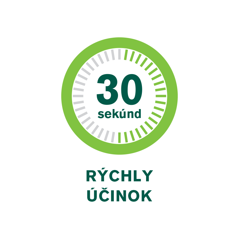 - Účinkuje už do 30 sekúnd, pri užití 2 dávok