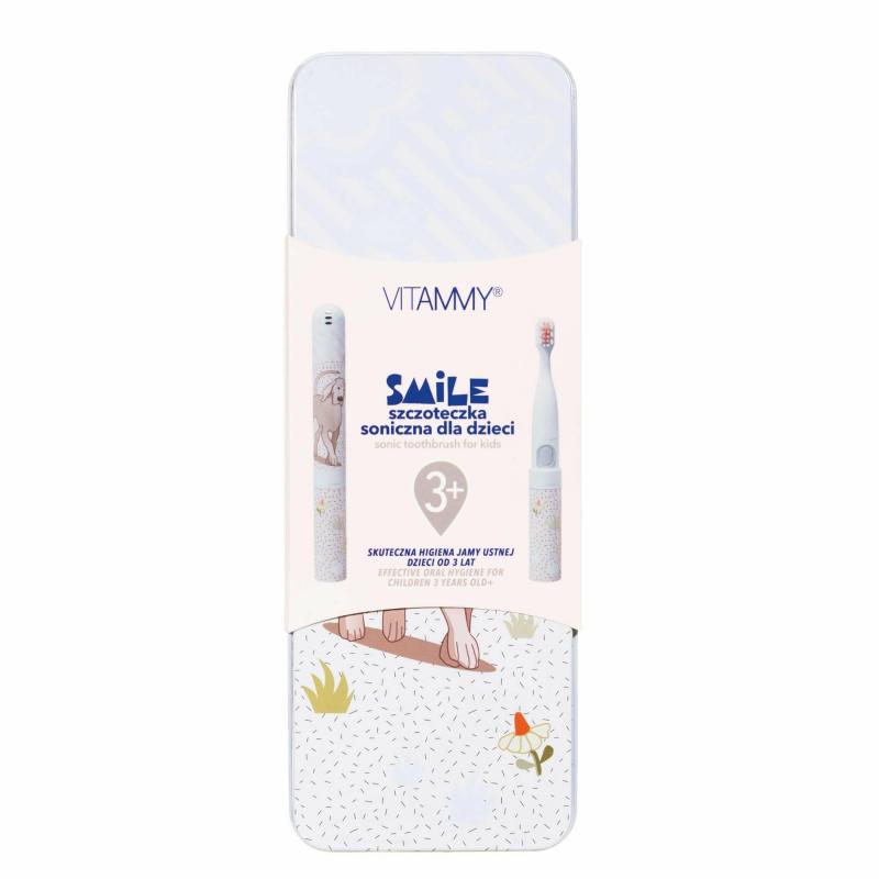 Vitammy Smile je sonická zubná kefka vytvorená s ohľadom na tých najmenších, ktorá kombinuje moderné technológie s rozprávkovým dizajnom. Vďaka sonickej pulzácii 8-14 tisíc pohybov za minútu účinne odstraňuje zubný povlak a stará sa o zdravie ďasien a zároveň podporuje deti v učení sa čistiť si zuby. Ľahký, ergonomický dizajn a mäkké vlákna umožňujú bezpečné a pohodlné používanie od 3 rokov. Vodotesné puzdro, praktický ochranný kryt a kovové puzdro pomáhajú udržiavať hygienu a ukladajú všetko príslušenstvo na jednom mieste. Farebné dizajny od Marty Bileckej z nej robia nielen funkčnú pomôcku, ale aj obľúbenú vychytávku pre deti.