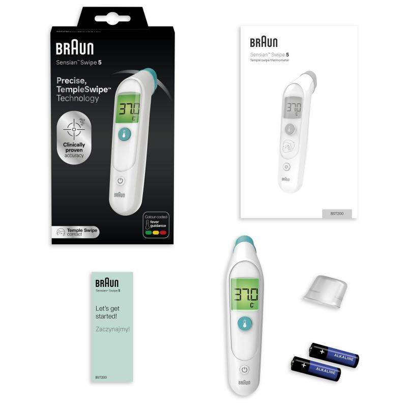 Teplomer TempleSwipe™ je univerzálne zariadenie, ktoré je vhodné pre všetkých členov rodiny, vrátane bábätiek. Ak hľadáte rýchly, jednoduchý a pohodlný spôsob merania teploty, Braun TempleSwipe™ je tou správnou voľbou. Výsledok získate už za 3 sekundy! Vďaka svojej unikátnej technológii poskytuje teplomer stabilné a spoľahlivé údaje pri každom meraní. Bol vyvinutý s využitím najnovších technológií a testovaný podľa prísnych medzinárodných noriem. Pre ochranu citlivého senzora je každý teplomer dodávaný s ochrannou meracou hlavicou, ktorú odporúčame nasadiť po každom po