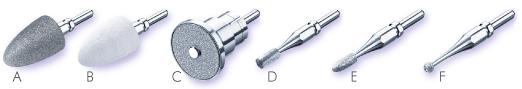 A - Najväčší rezný hrot (zafírový kužeľ) je valcový a môže byť použitý na ošetrenie nechtov, ale aj na odstraňovanie stvrdnutej kože z nechtovej oblasti a päty.