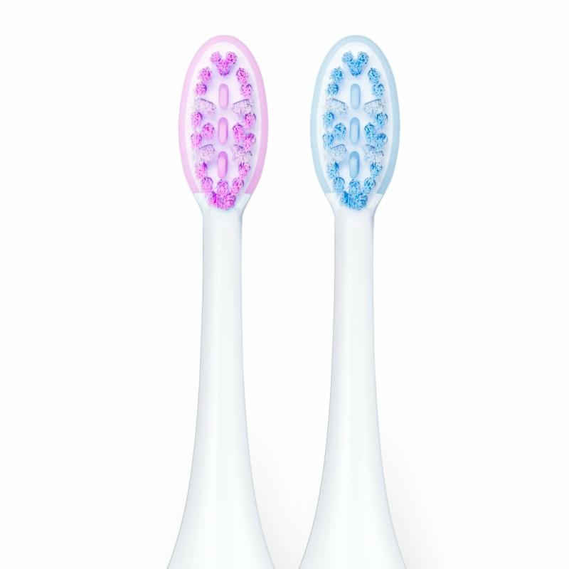 Profil hlavy kefky podporuje automatickú korekciu polohy, čo zvyšuje efektivitu čistenia. Mäkké 3D prvky jemne stimulujú ďasná a účinne čistia líca a jazyk, čím poskytujú komplexnú ústnu starostlivosť. Silikónový golier má ochrannú funkciu , pohlcuje vibrácie a tým znižuje nepohodlie spojené s používaním sonickej zubnej kefky.