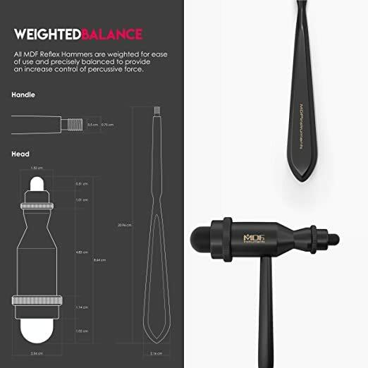 Rukoväť kladivka je dokonale a presne vyvážená pre plnú kontrolu sily úderu. Špicaté zakončenie umožňuje štúdium ďalších reflexov, napríklad Babinského reflex.