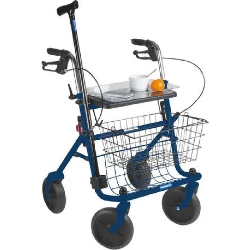 Chodítko je skladacie, možno ho pohodlne prepravovať aj v aute. Na bezpečné pripevnenie v ráme musia byť rukoväte zasunuté minimálne desať centimetrov - na rukoväti je to naznačené nápisom. Páčky musia po pritiahnutí smerovať dolu. Ak majú inú polohu, rozmontujte ich a nastavte do požadovanej polohy. Košík na nákupy voľne zaveste na dva háčiky na ráme chodítka. Plastová miska má štyri nožičky, ktoré zapadnú do čiernej gumovej podložky v hornej časti chodítka. Táto miska slúži len na odkladanie drobných predmetov. Nepokladajte do tejto misky žiadne horúce predmety, miska sa tým môže poškodiť. Obsluha chodítka je veľmi jednoduchá. Chodítko používajte pokiaľ možno na rovných plochách a snažte sa vyhnúť všetkým nerovnostiam ako sú vpuste do kanálov a podobne. Za mokra a na snehu sa brzdám znižuje účinnosť a hrozí nebezpečenstvo úrazu aj poškodenie chodítka.V extrémnych poveternostných podmienkach je lepšie chodítko nepoužívať. Brzdy sú nastaviteľné a pre bezpečnosť prevádzky je nutné kontrolovať, či sú nastavené obidve rovnako. Na pravej strane chodítka je držiak, do ktorého môžete pripevniť vychádzkovú palicu.