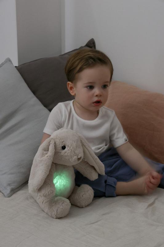 S 8 upokojujúcimi zvukmi a melódiami, z ktorých si môžete vybrať, bude vaše dieťa prenesené do ríše snov jediným stlačením tlačidla! Zajko má aj suchý zips, vďaka ktorému najnovšieho parťáka bábätka jednoducho pripevníte na každú postieľku. A keď sa zajko potrebuje okúpať, odstráňte reproduktor a hoďte maskota do bielizne.