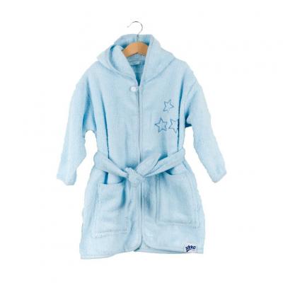 XKKO BIO Bavlnený župan Organic - Grey Stars, 12-24m, modrý